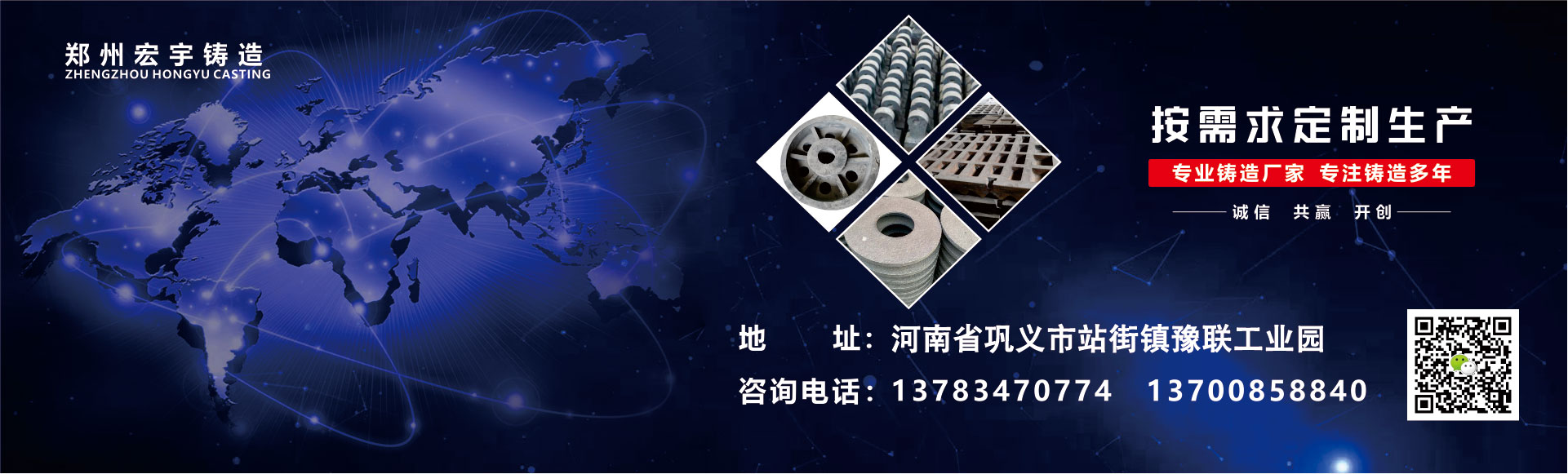 鄭州宏宇鑄造位于河南省鄭州鞏義市是鑄造件廠家,主要生產生鐵機械配件、耐磨襯板、耐磨錘頭、合金耐磨錘頭、制砂機錘頭、鑄鋼件、高鉻合金鑄件、球墨鑄鐵件、消失模工藝鑄件、砂型工藝鑄件等!來樣即可加工。 我們技術力量雄厚、設備齊全,目前有高級技師數名,技術人員數十名,能滿足客戶的不同需求,來圖來樣均可生產,而且為了確保產品質量進一步得到完善和提高, 確保供貨及時達到客戶的滿意,我們采用優質原材料及先進的制造工藝!